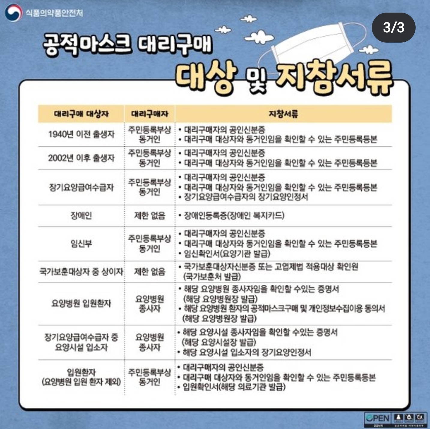 - ํ์, ์ ์ ํ์ ๋ฑ์ ๋ง์คํฌ ๊ตฌ๋งค๋ฅผ ๋ณด๋ค ํธ๋ฆฌํ๊ฒ ํ ์ ์๋๋ก ๊ณต์ ๋ง์คํฌ ๋๋ฆฌ๊ตฌ๋งค ๋์์ ํ๋ํ ํ์๊ฐ ์๊ธฐ ๋๋ฌธ์ ๊ท์ ์ด ๋ณ๊ฒฝ๋์์ต๋๋ค.